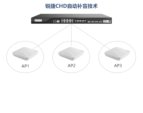 尊龙时凯CHD自动补盲技术:在无线设备异常故障时,留下射频空洞,及时发现射频空洞,自动进行AP功率调整,完成射频空洞自动补盲。实现秒级空洞发现,调整过程不影响体验,业务不中断。