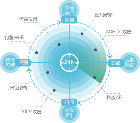 AI Radio可以提供更安全的无线网络。传统无线安方案,射频模块同时进行数据通信和扫描,只能分时扫描、单频段扫描,扫描盲区大,很多威胁无法扫描,扫描之后也无法有效反制。