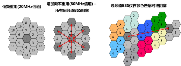 BSS着色是802.11ah中引入的一种机制,用于为每个BSS分配不同的“颜色”,将其扩展到11ax,根据检测到的颜色分配新的频道访问行为。